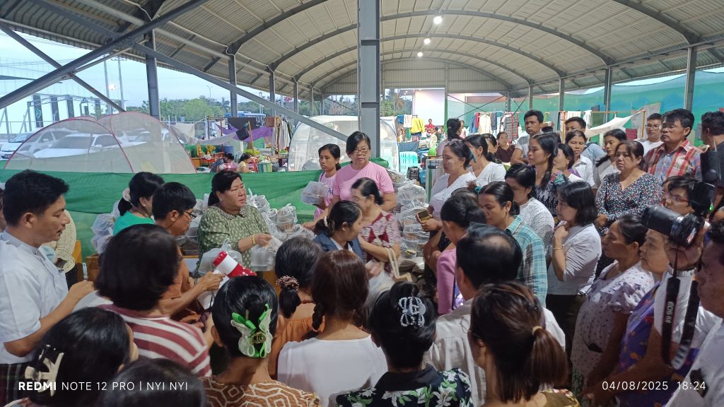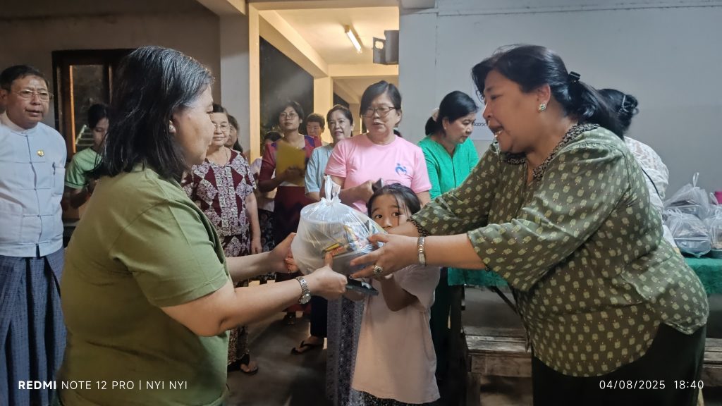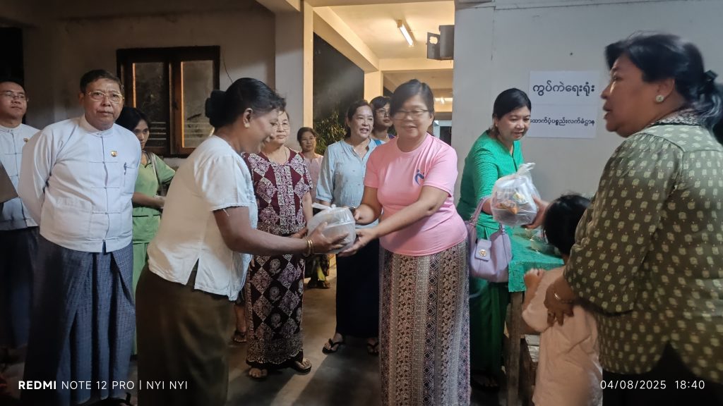 ၈.၄.၂၅ ရက်နေ့တွင် မြန်မာနိုင်ငံ အမျိုးသမီးများနှင့်ကလေးသူငယ်များ ဘဝမြှင့်တင်ရေးအသင်းမှ ဗဟိုအလုပ်အမှုဆောင်များက နေပြည်တော် ကယ်ဆယ်ရေးစခန်းများရှိ ငလျင်ဒဏ်ခံရသော ဝန်ထမ်းမိသားစု ၃၆၀ စု၊ လူဦးရေ(ကျား) ၃၈၅ ဦး၊ (မ) ၃၇၂ ဦးအား ငါးနီတူကြော်၊ ငပိချက်၊ လက်ဖက်၊ ပဲကြော်၊ ကော်ဖီမစ်၊ ရေသန့်ဗူးစသည့် စားသောက်ဖွယ်ရာများအား သွားရောက်ကူညီလှူဒါန်းပေးရင်း အားပေးစကားများပြောကြားခဲ့ပါသည်။ လှူဒါန်းမှုမှာ ၅၃၀,၀၀၀/-ကျပ်ဖြစ်ပါသည်။