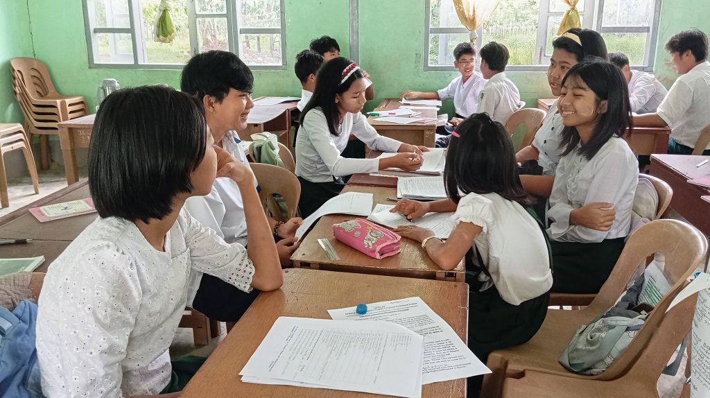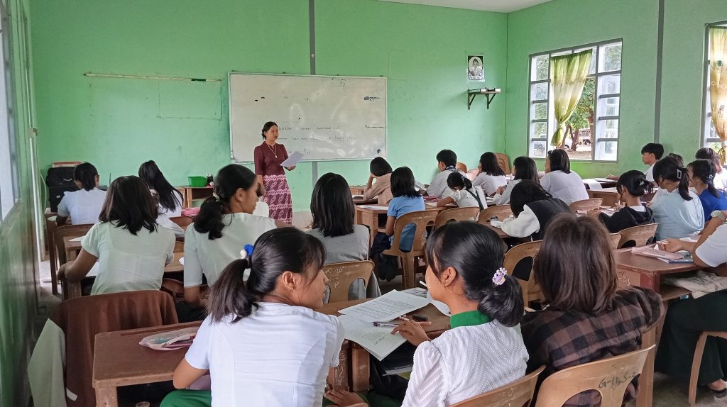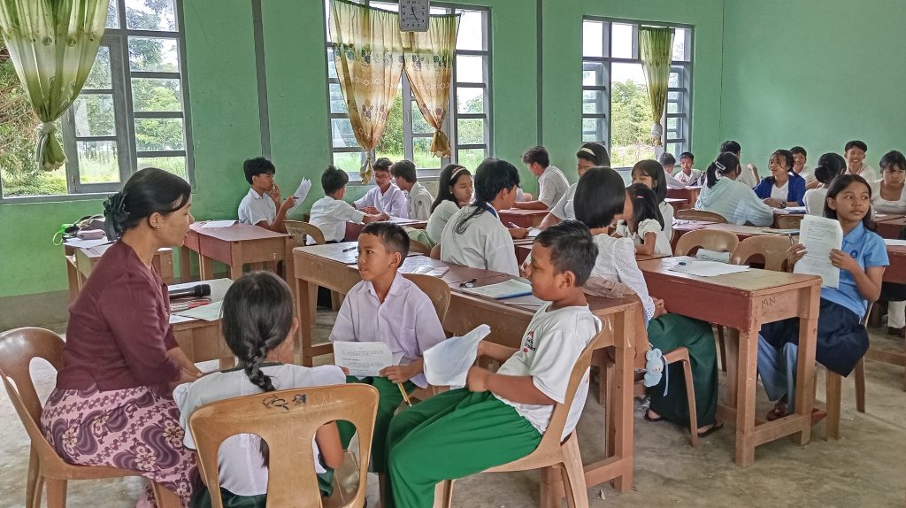 ၁၇.၅.၂၀၂၅ ရက်နေ့ မြန်မာနိုင်ငံ အမျိုးသမီးများနှင့်ကလေးသူငယ်များ ဘဝမြှင့်တင်ရေးအသင်းမှ အ.ထ.က(၁၂)ကျောင်းတွင်ဖွင့်လှစ်သင်ကြားနေသော နွေရာသီအင်္ဂလိပ်စာ(4-Skill) Pre-Intermediate level သင်တန်းတွင် သင်တန်းနည်းပြဆရာ/ဆရာမများ၏ သင်ကြားပို့ချပေးနေမှုများ……