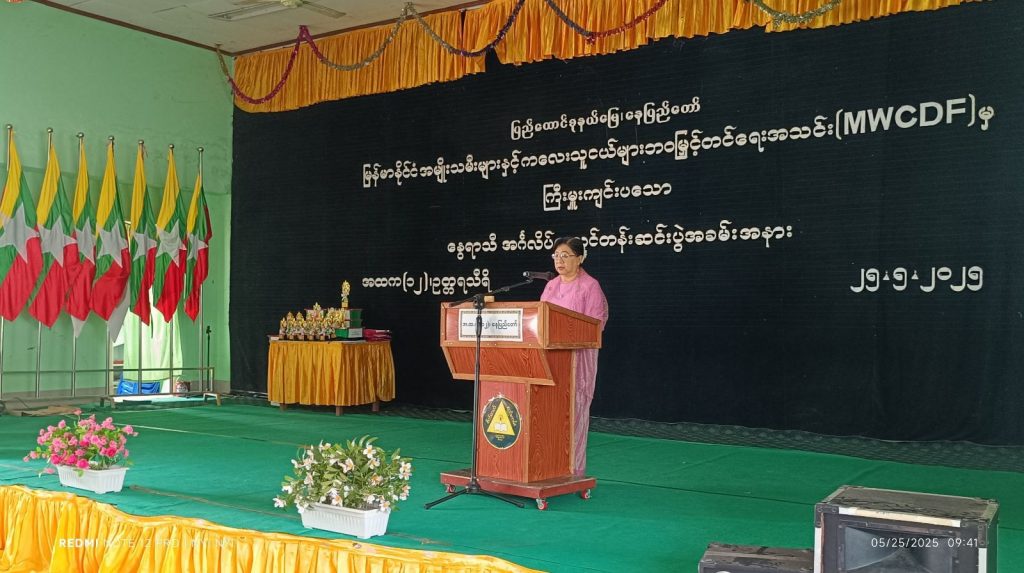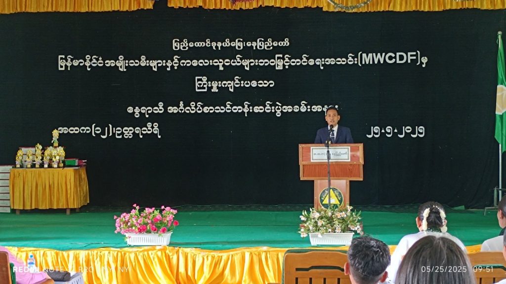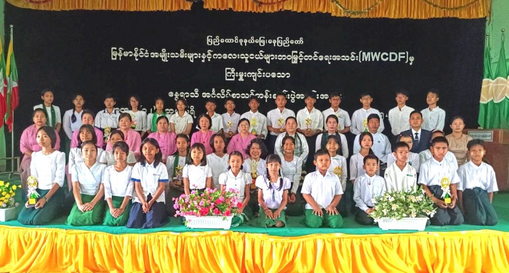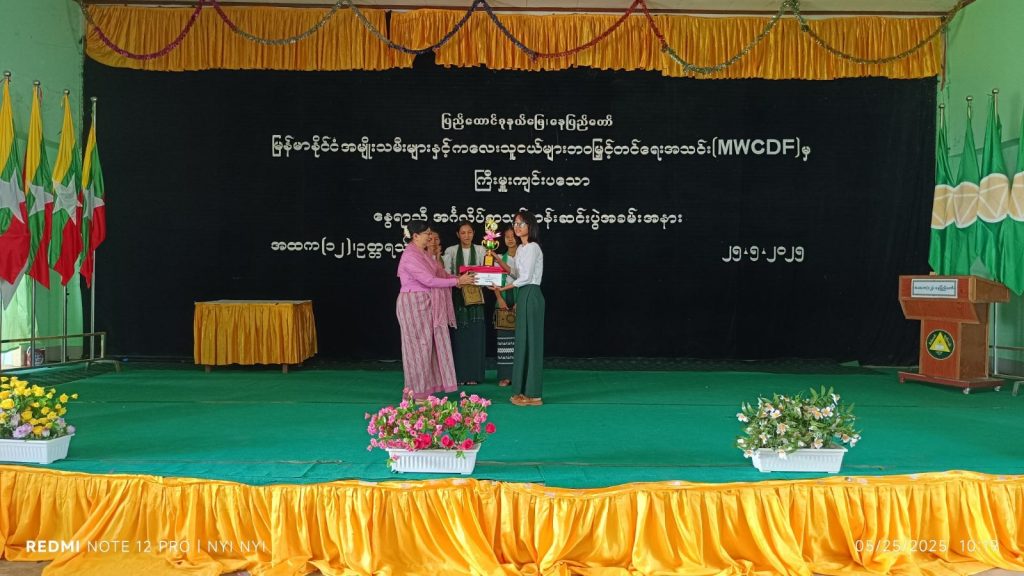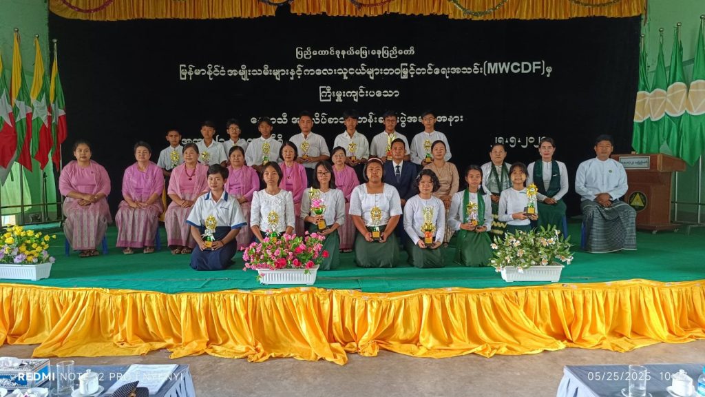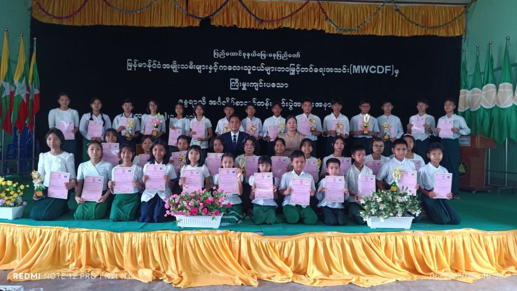 ၂၅.၅.၂၀၂၅ ရက်နေ့တွင် မြန်မာနိုင်ငံ အမျိုးသမီးများနှင့်ကလေးသူငယ်များ ဘဝမြှင့်တင်ရေးအသင်း (MWCDF)မှ ကြီးမှူး၍ဖွင့်လှစ်သော အဋ္ဌမအကြိမ်မြောက် နွေရာသီအင်္ဂလိပ်စာ (4 Skills) Pre- Intermediate Level သင်တန်းဆင်းပွဲအခမ်းအနားအား ဥတ္တရသီရိမြို့နယ်၊ အမှတ်(၁၂)၊ အခြေခံပညာ အထက်တန်းကျောင်း၊ ပညာရတနာခန်းမ၌ ကျင်းပပြုလုပ်ရာ မြန်မာနိုင်ငံ အမျိုးသမီးများနှင့် ကလေးသူငယ်များ ဘဝမြှင့်တင်ရေးအသင်း(MWCDF) မှ ဒုတိယဥက္ကဋ္ဌနှင့် ဗဟိုအလုပ်အမှုဆောင်များ၊ ဥတ္တရသီရိမြို့နယ် ပညာရေးမှူး၊ ဒုပညာရေးမှူးနှင့် အ.ထ.က(၁၂) ကျောင်းအုပ်ဆရာမကြီးနှင့် ဆရာ/ ဆရာမများ၊ ကျောင်းသား/သူများ တက်ရောက်ကြပါသည်။ အဆိုပါသင်တန်းဆင်းပွဲအခမ်းအနား၌ မြန်မာနိုင်ငံ အမျိုးသမီးများနှင့်ကလေးသူငယ်များ ဘဝမြှင့်တင်ရေးအသင်း(MWCDF) ဒုတိယဥက္ကဌ ဒေါ်စုညွန့်ဦးက အမှာစကားပြောကြားခဲ့ပါသည်။ ဆက်လက်၍ ဥတ္တရသီမြို့နယ် ပညာရေးမှူးဆရာမကြီး ဒေါ်အုန်းဆန်းကလည်း အမှာစကားပြောကြားပြီးနောက် သင်တန်းနည်းပြဆရာ ဦးမင်းစိုးသူရက အမှာစကားပြောကြားခဲ့ပါသည်။ ၎င်းနောက် သင်တန်းတွင် တက်ရောက်ခဲ့ကြသော ကျောင်းသား/သူများအား သင်တန်းဆင်းလက်မှတ်ပေးအပ်ချီးမြှင့်ရာ သင်တန်းသား/သူများကိုယ်စား ကျောင်းသားတစ်ဦးမှ လက်ခံရယူခဲ့ပါသည်။ ဆက်လက်၍ ဆုရရှိကျောင်းသား/သူများအား ဆုချီးမြှင့်ခြင်းအစီအစဉ်တွင် (MWCDF)အသင်း ဒုတိယဥက္ကဌ ဒေါ်စုညွန့်ဦးမှ ပထမဆုရှင်အား ဆုချီးမြှင့်ခြင်း၊ မြို့နယ်ပညာရေးမှူး ဒေါ်အုန်းဆန်းမှ ဒုတိယဆုရှင်အား ဆုချီးမြှင့်ခြင်း၊ သင်တန်းဆရာဦးမင်းစိုးသူရမှ တတိယဆုရှင်အား ဆုချီးမြှင့်ခြင်း၊ အ.ထ.က(၁၂)ကျောင်းအုပ်ဆရာမကြီးနှင့် (MWCDF)အသင်း ဗဟိုအလုပ်အမှုဆောင်များမှ ထူးချွန်ဆု(၇)ဆုနှင့် နှစ်သိမ့်ဆု(၅)ဆုရရှိသူများအား အသီးသီးဆုများ ချီးမြှင့်ပေးအပ်ခဲ့ကြပါသည်။ သင်တန်းတက်ရောက်ခဲ့ရခြင်းနှင့်ပတ်သက်၍ ဆုရရှိသူများက ကျေးဇူးတင်စကားပြောကြားခဲ့ကြပါသည်။ အသင်းဒုဥက္ကဌ ဒေါ်စုညွန့်ဦးက သင်တန်းနည်းပြ ဆရာနှင့်ဆရာမတို့အား ဂုဏ်ပြုလက်ဆောင်ချီးမြှင့်ပေးအပ်ပြီး မြို့နယ်ပညာရေးမှူးနှင့် ကျောင်းအုပ်ဆရာမကြီးတို့အား အမှတ်တရလက်ဆောင်များပေးအပ်ခဲ့ပါသည်။ ထိုနောက် တက်ရောက်လာသောတာဝန်ရှိသူများနှင့် ကျောင်းသား/သူများ အမှတ်တရဓါတ်ပုံရိုက်ကူးပြီး သင်တန်းဆင်းပွဲအခမ်းအနားကို အောင်မြင်စွာကျင်းပခဲ့ကြပါသည်။