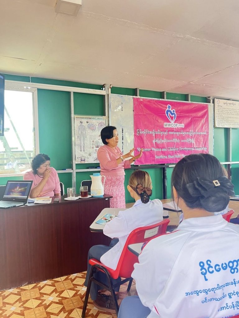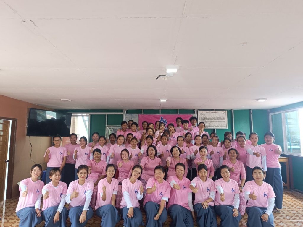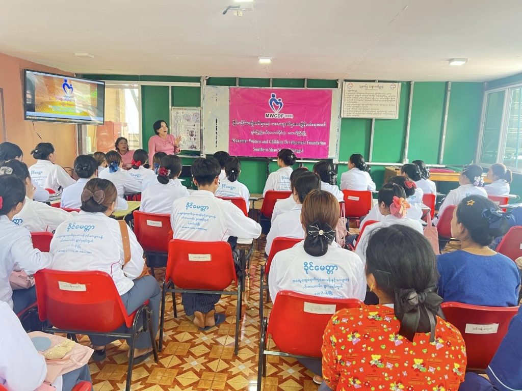 မြန်မာနိုင်ငံ အမျိုးသမီးများနှင့်ကလေးသူငယ်များ ဘဝမြှင့်တင်ရေးအသင်းကြီး၏ (၁၂) နှစ်ပြည့် အခမ်းအနားကို ဂုဏ်ပြုကြိုဆိုသောအားဖြင့် ၂၀.၀၅.၂၀၂၅နေ့ နံနက် ၁၀:၀၀ အချိန်တွင် ရှမ်းပြည်နယ် (တောင်ပိုင်း) အမျိုးသမီးများနှင့်ကလေးသူငယ်များ ဘဝမြှင့်တင်ရေးအသင်းဥက္ကဌ ဒေါ်ကေသီအောင်နှင့် အလုပ်အမှုဆောင် ၁၂ ဦးတို့သည် ခိုင်မေတ္တာအကူသူနာပြုသင်တန်းကျောင်းမှ သင်တန်းသား/သူများကို အသင်းကြီး၏ ရည်ရွယ်ချက်များနှင့် ဆောင်ရွက်ချက်များကို ရှင်းလင်းပြောကြားခဲ့ရာ ပရဟိတလုပ်ငန်းများအား စိတ်ပါဝင်စားကြ၍ အသင်းသို့ဝင်ရောက်လာသည့် အသင်းဝင်သစ်များ၏ လျှောက်လွှာများအားလက်ခံကာ နွေးထွေးစွာကြိုဆိုခဲ့ကြပါသည်။