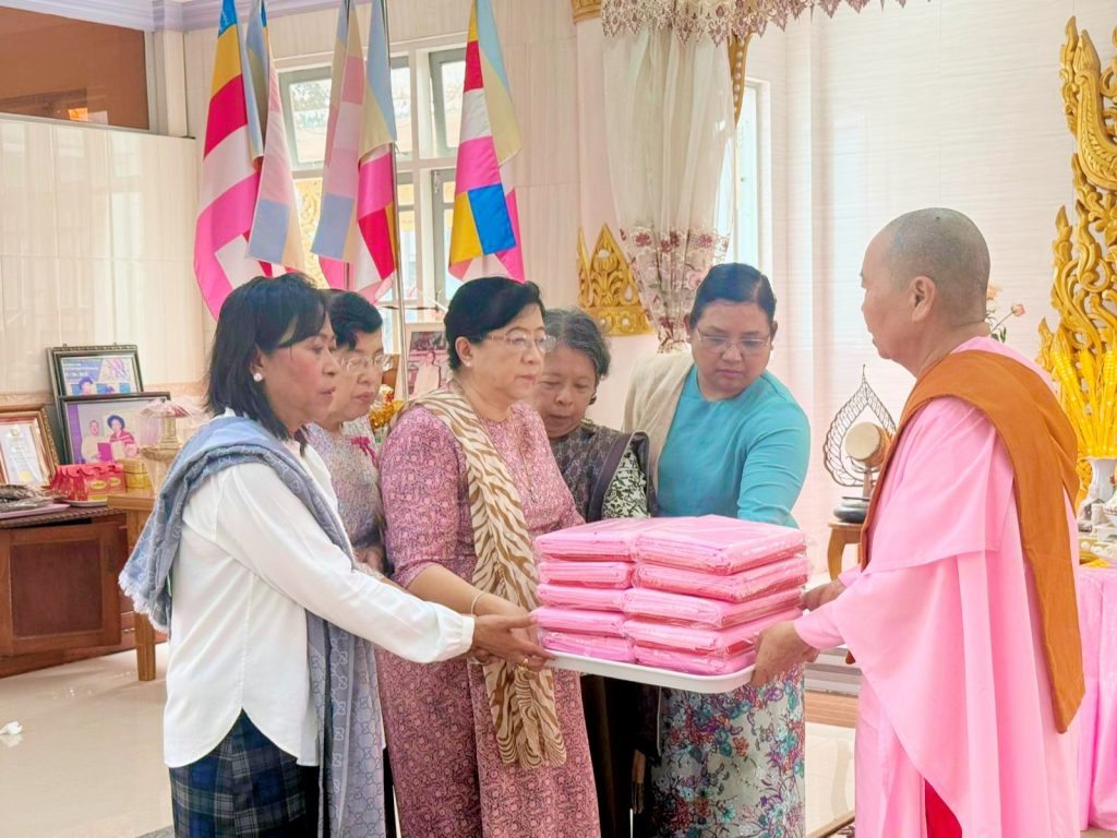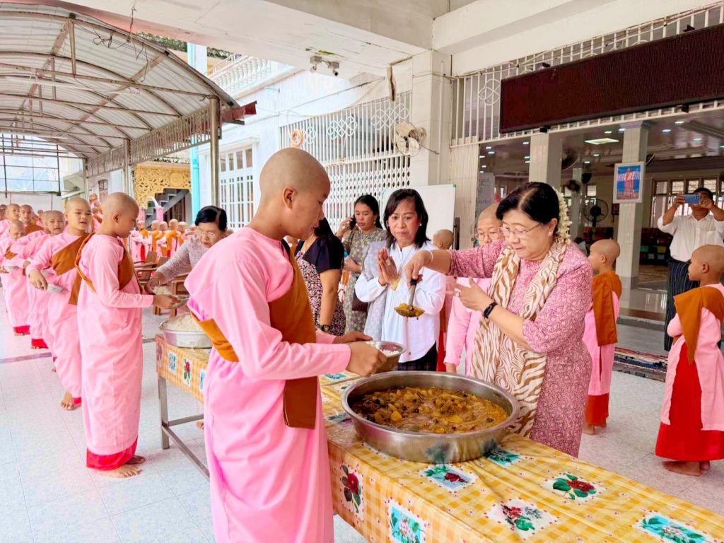 ၃၀.၅.၂၀၂၅ ရက်နေ့တွင် မြန်မာနိုင်ငံ အမျိုးသမီးများနှင့်ကလေးသူငယ်များ ဘဝမြှင့်တင်ရေးအသင်းမှ ဒုတိယဥက္ကဋ္ဌဒေါ်စုညွန့်ဦး (မိသားစု)နှင့် အလှူရှင်များစုပေါင်း၍ ရန်ကုန်မြို့၊ သလျင်မြို့နယ်၊ ခေမာရာမသီလရှင်စာသင်တိုက်ရှိ သီလရှင်ဆရာကြီးနှင့် စာသင်သီလရှင်ဆရာလေးများအား နေ့ဆွမ်းဆက်ကပ်လောင်းလှူခြင်း၊ အလှူငွေများ၊ သီလရှင်ဝတ်စုံများနှင့် စားသောက်ကုန်ပစ္စည်းများ သွားရောက်လှူဒါန်းခဲ့ပါသည်။