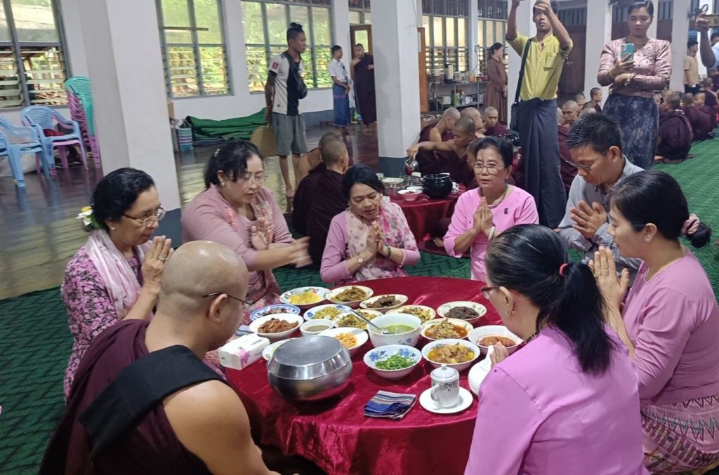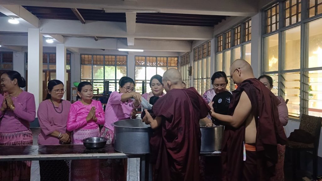 ၁၅.၆.၂၀၂၅ ရက်နေ့တွင် ပဲခူးမြို့၊ ကျိုက်ပွန်ဇေတဝန်ကျောင်းတိုက်ရှိ ဆရာတော်ကြီး အမှူးပြု၍ သံဃာတော်များအား မြန်မာနိုင်ငံ အမျိုးသမီးများနှင့်ကလေးသူငယ်များ ဘဝမြှင့်တင်ရေးအသင်း (ဗဟို) ဥက္ကဌ ဒေါက်တာဝေဝေသာ ဦးဆောင်၍ တိုင်းအဖွဲ့ မှဥက္ကဌ ၊ အတွင်းရေးမှူးနှင့် အဖွဲ့ဝင်များက တစ်နေ့တာ အာရုဏ်ဆွမ်း၊ နေ့ဆွမ်း၊ ညနေ အအေးများ ဆက်ကပ်လှူဒါန်းခဲ့ကြပါသည်။ ကျောင်းရှိ နေရပ်စွန့်ခွာစစ်ဘေးရှောင် မိသားစုများကိုလည်း ဆွေမျိုးရင်းခြာကဲ့သို့ ကူညီပေးအပ် လှူဒါန်းခဲ့ပါသည်။