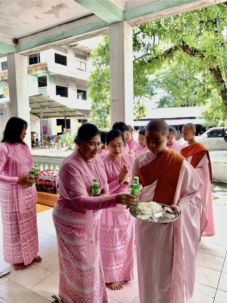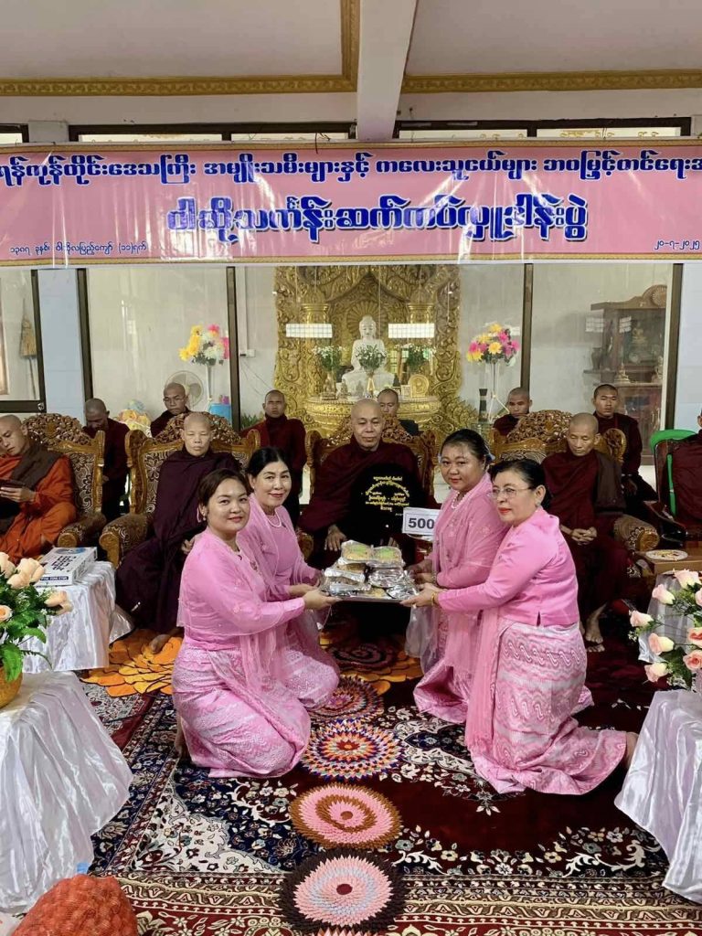 ၂၀.၇.၂၀၂၅ ရက်နေ့တွင် ရန်ကုန်တိုင်း အမျိုးသမီးများနှင့်ကလေးသူငယ်များ ဘဝမြှင့်တင်ရေးအသင်းမှ ဥက္ကဌ၊ အမှုဆောင်များနှင့် အသင်းဝင်များစုပေါင်း၍ မင်္ဂလာဒုံမြို့နယ်၊ ပုလဲမြို့သစ်ရှိ ကရုဏာပရဟိတမဟာစည်ကျောင်းတိုက်သို့ သွားရောက်၍ နေ့ဆွမ်းဆက်ကပ်ပြီး ဝါဆိုသင်္ကန်းများ ဆက်ကပ်ခြင်း၊ နေ့ဆွမ်းအတွက်နဝကမ္မဝတ္ထုငွေ(၅)သိန်းကျပ်နှင့် ရဟန်းလွယ်အိတ်များ၊ ဆန်၊ ဆီ၊ ကြက်သွန်များ၊ အချိုရည်များ၊ လက်ဖက်အကြော်စုံများကို ဆက်ကပ်လှူဒါန်းခဲ့ကြပါသည်။ ဆောက်လုပ်ဆဲ ကျောင်းတော်ကြီးအတွက်လည်း (၅)သိန်းကျပ် ပါဝင်လှူဒါန်း ကုသိုလ်ပြုခဲ့ကြပါသည်။ (လှူဒါန်းငွေစုစုပေါင်းမှာ- (၁၈၉၀,၀၀၀)ကျပ်ဖြစ်ပါသည်)