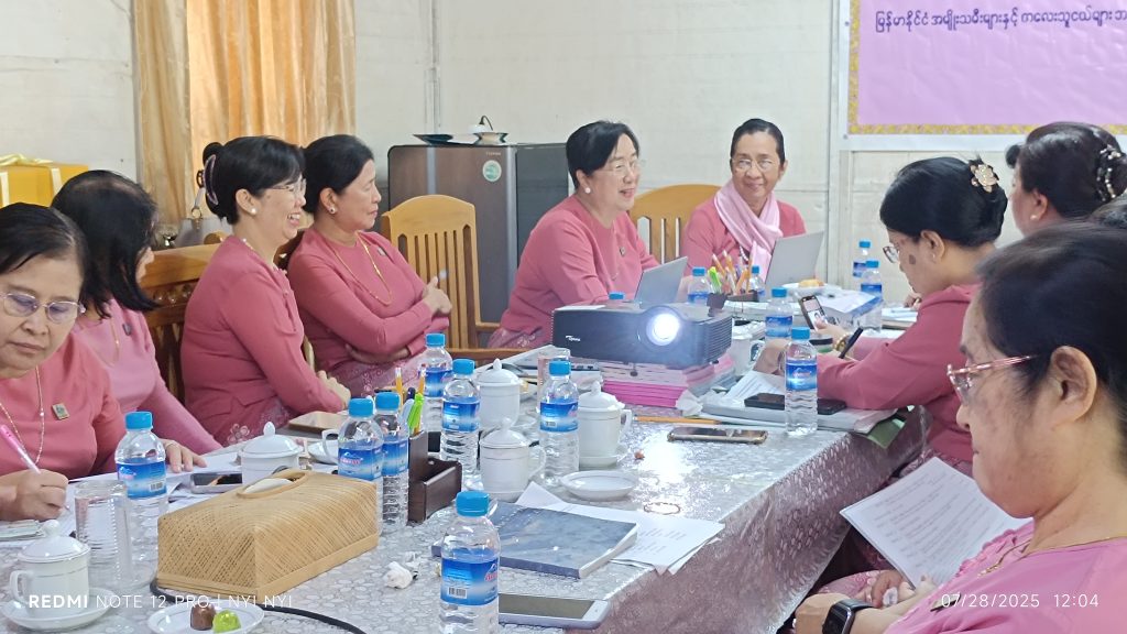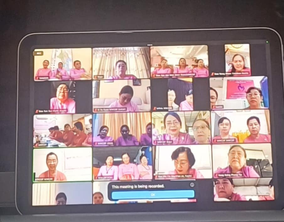 ၂၈.၇.၂၀၂၅ ရက်နေ့တွင် မြန်မာနိုင်ငံ အမျိုးသမီးများနှင့်ကလေးသူငယ်များ ဘဝမြှင့်တင်ရေး အသင်းရုံးချုပ်၌ အသင်း၏ (၁၂) နှစ်မြောက်နှစ်ပတ်လည် အခမ်းအနားအား online zoom meeting ဖြင့် ကျင်းပပြုလုပ်ရာ အသင်းမှ ဥက္ကဌ၊ ဒုဥက္ကဌ၊ အတွင်းရေးမှူး၊ ဗဟိုအလုပ်အမှုဆောင်များနှင့် တိုင်းဒေသကြီး/ ပြည်နယ်အသီးသီးမှ ဥက္ကဌ၊ ဒုဥက္ကဋ္ဌနှင့် အတွင်းရေးမှူးတို့ တက်ရောက်ဆွေးနွေးကြပါသည်။
