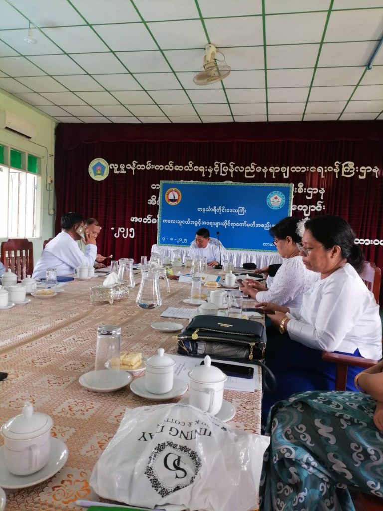 ၇.၈.၂၀၂၅ ရက်နေ့တွင် တနင်္သာရီတိုင်း အမျိုးသမီးများနှင့်ကလေးသူငယ်များ ဘဝမြှင့်တင်ရေးအ သင်းမှ ဥက္ကဋ္ဌနှင့် အဖွဲ့ဝင် (၂)ဦးသည် တနင်္သာရီတိုင်းဒေသကြီး လူမှုဝန်ထမ်း၊ ကယ်ဆယ်ရေးနှင့် ပြန်လည်နေရာချထားရေးဝန်ကြီးဌာနက ၎င်းတို့၏ရုံးတွင်ကျင်းပပြုလုပ်သော တနင်္သာရီတိုင်း ဒေသကြီး ကလေးသူငယ်အခွင့်အရေးများဆိုင်ရာ အစည်းအဝေးသို့ တက်ရောက်ခဲ့ပါသည်။