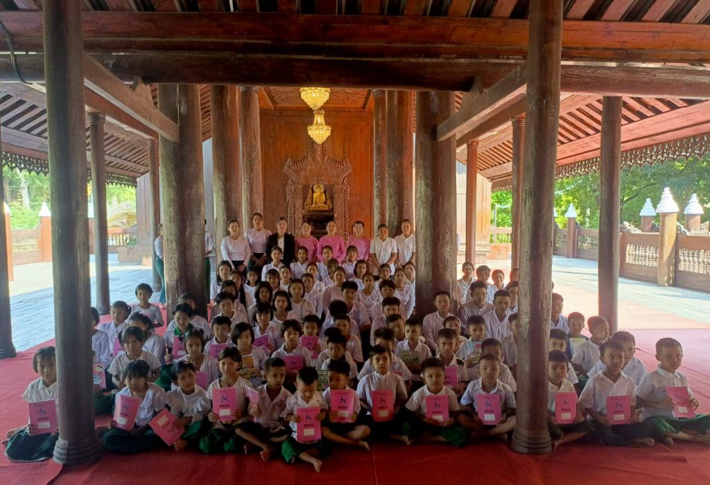 ၂၈.၉.၂၀၂၅ ရက်နေ့တွင် မန္တလေးတိုင်း အမျိုးသမီးများနှင့်ကလေးသူငယ်များ ဘဝမြှင့်တင်ရေးအသင်းမှ ဥက္ကဌ ဒေါ်အေးအေးသင်းနှင့် အသင်းဝင် ၂ ဦးတို့သည် စက်တင်ဘာလလှူဒါန်းမှုအဖြစ် ရွှေကျင်တိုက်မကြီးကျောင်းတွင် ဆရာတော်ကြီး၏ စောင့်ရှောက်မှုဖြင့်ရောက်ရှိနေကြသော မတ္တရာမြို့နယ်၊ မိုးကြိုး(အ.ထ.က)မှ တိုက်ပွဲရှောင် ကျောင်းသား/သူ ၁၁၂ ဦးအတွက် စာရေးကိရိယာများနှင့် ဆီချက်ခေါက်ဆွဲထုတ်များ လှူဒါန်းပေးခဲ့ပါသည်။ ထို့နောက် တက္ကသိုလ်ဝင်တန်းအောင် ကျောင်းသား ၅ ဦးကိုလည်း ဆုငွေနှင့် စာရေးကိရိယာများချီးမြှင့်ခဲ့ပါသည်။ လှူဒါန်းငွေစုစုပေါင်း ၃၁၃,၀၀၀/-ကျပ်ဖြစ်ပါသည်။