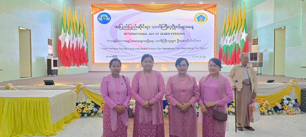 ၁.၁၀.၂၀၂၅ ရက်နေ့တွင် ကရင်ပြည်နယ် အမျိုးသမီးများနှင့် ကလေးသူငယ်များဘဝမြှင့်တင်ရေးအသင်းမှ ဥက္ကဌ ဒေါ်နန်းမြင့်တင်၊ ဒုဥက္ကဌ နန်းလှယဉ်မေ၊ အတွင်းရေးမှူး နန်းခင်သက်မာဝင်း နှင့် အဖွဲ့ဝင် ၁ ဦးတို့သည် ဘားအံမြို့၊ ဇွဲကပင်ခန်းမတွင်ကျင်းပပြုလုပ်သော အပြည်ပြည်ဆိုင်ရာ သက်ကြီးပုဂ္ဂိုလ်များနေ့အခမ်းအနားကို တက်ရောက်ခဲ့ပြီး အဘိုး/ဘွား ၈၃ ဦးအား အလှူငွေများ လှူဒါန်းထောက်ပံ့ခဲ့ပါသည်။