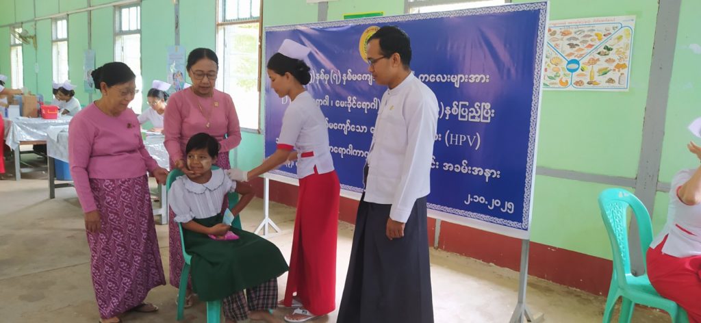 ၂.၁၀.၂၀၂၅ ရက်နေ့တွင် မကွေးတိုင်း အမျိုးသမီးများနှင့်ကလေးသူငယ်များ ဘဝမြှင့်တင်ရေးအသင်းမှ ဥက္ကဌ ဒေါ်ခင်စီ နှင့် အဖွဲ့ဝင် ၃ ဦးသည် မကွေးမြို့၊ အ.ထ.က (၃) ရှိ အသက် ၅ နှစ်မှ ၇ နှစ်ကျော်သော KG ကလေးများအား DT ( ဆုံဆို့ရောဂါ ၊ မေးခိုင်ရောဂါ) နှင့် အသက် ၉ နှစ်ပြည့်ပြီး ၁၀ နှစ် မကျော်သော ကျောင်းသား/သူများအား (HPV) သားအိမ်ခေါင်းကင်ဆာရောဂါကာကွယ်ဆေးထိုးနှံခြင်း အခမ်းအနားသို့ တက်ရောက်ခဲ့ပါသည်။