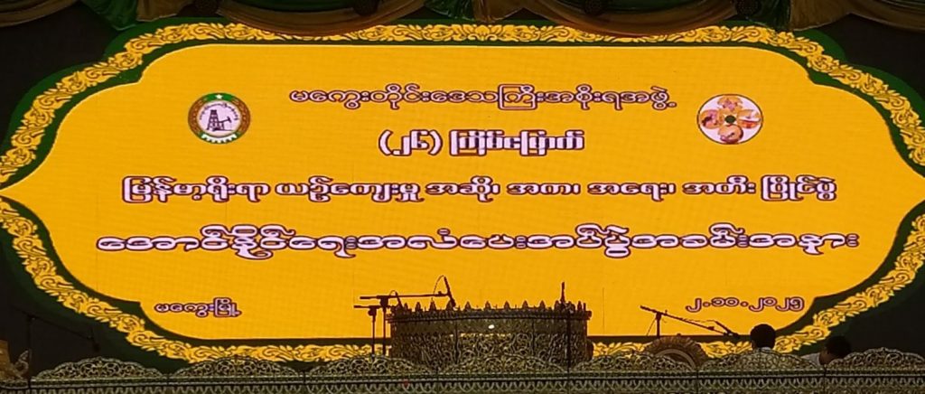 ၂.၁၀.၂၀၂၅ ရက်နေ့ နေ့လည်ပိုင်းတွင် မကွေးတိုင်း အမျိုးသမီးများနှင့်ကလေးသူငယ်များ ဘဝမြှင့်တင်ရေးအသင်းမှ ဥက္ကဌ ဒေါ်ခင်စီ နှင့် အဖွဲ့ဝင် ၁ ဦးသည် မကွေးမြို့၊ မြို့တော်ခန်းမ၌ မကွေးတိုင်း ဒေကြီးအစိုးရအဖွဲ့မှကျင်းပပြုလုပ်သော (၂၆) ကြိမ်မြောက် မြန်မာ့ရိုးရာယဉ်ကျေးမှု အဆို၊ အက၊ အရေး၊ အတီး ဗဟိုအဆင့်ပြိုင်ပွဲသို့ မကွေးတိုင်းဒေသကြီးကိုယ်စားပြု သွားရောက်ယှဉ်ပြိုင်မည့် ပြိုင်ပွဲဝင်များအား အောင်နိုင်ရေးအလံပေးအပ်ပွဲအခမ်းအနားကို တက်ရောက်ခဲ့ပါသည်။
