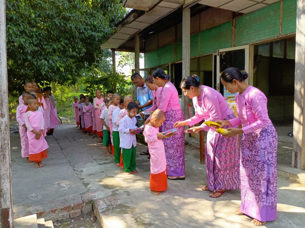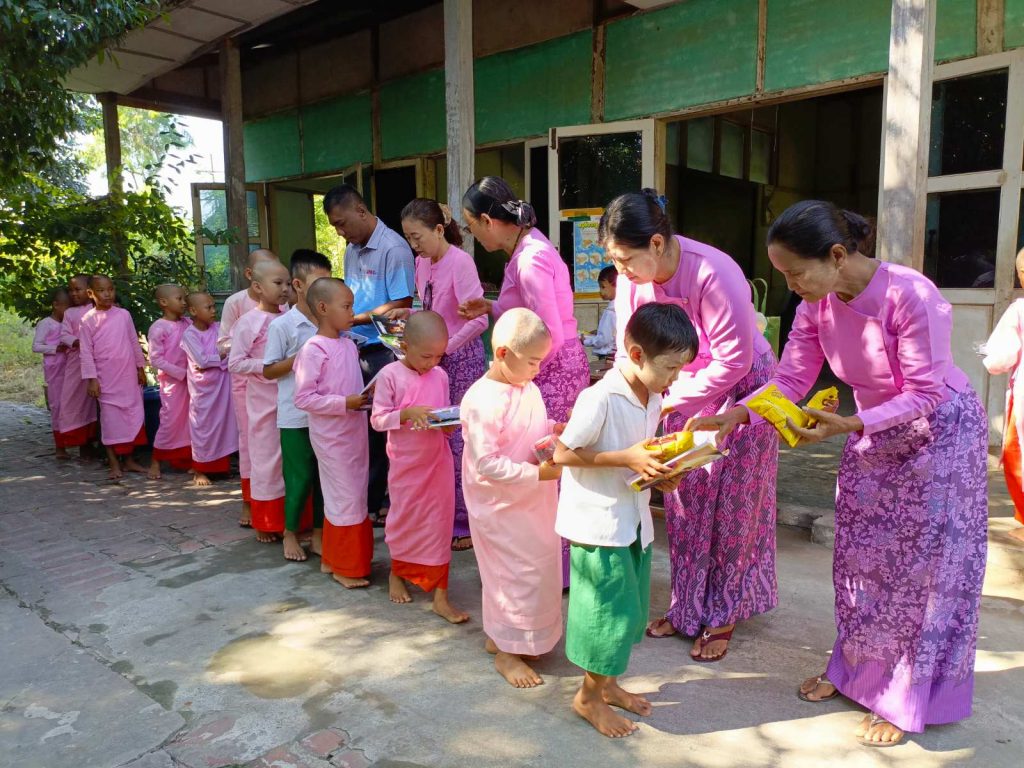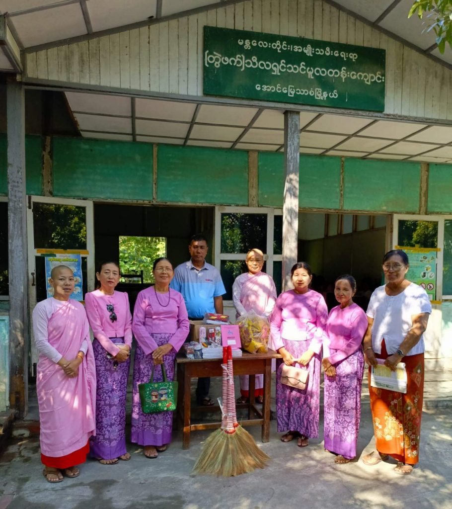 မန္တလေးတိုင်း အမျိုးသမီးများနှင့်ကလေးသူငယ်များ ဘဝမြှင့်တင်ရေးအသင်းမှ ဥက္ကဌ ဒေါ်အေးအေးသင်းနှင့် အဖွဲ့ဝင် ၃ ဦးတို့သည် ၂၄.၁၀.၂၀၂၅ ရက်နေ့တွင် မန္တလေးတိုင်း၊ အောင်မြေသာစံမြို့နယ်၊ အမျိုးသမီးရေးရာ (တွဲဖက်)သီလရှင်သင်မူလတန်းကျောင်းသို့ သွားရောက်၍ KG တန်းနှင့် G-5 တန်း အထိ ဆရာလေးများနှင့် ပြင်ပကျောင်းသား/သူ ၄၀ ဦးအတွက် စာရေးကိရိယာများ၊ မုန့်နှင့် တံမြက်စည်းများလှူဒါန်းခဲ့ပြီး အလှူရှင်တစ်ဦးမှလည်း ကျောင်းသားတစ်ဦးလျှင် ၁,၀၀၀/-ကျပ်နှုန်းစီပေးဝေလှူဒါန်းခဲ့ပါသည်။ စုစုပေါင်းလှူဒါန်းငွေ ၃၅၀,၀၀၀/-ကျပ်ဖြစ်ပါသည်။