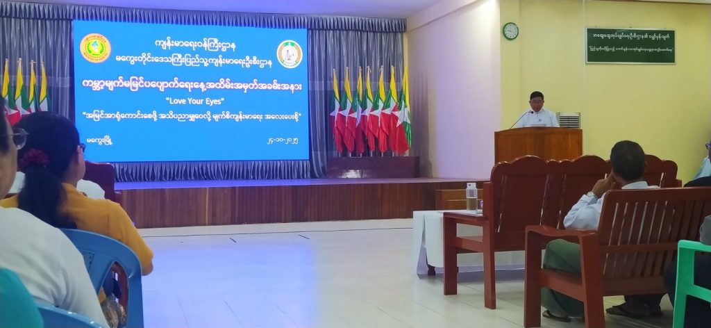 မကွေးတိုင်း အမျိုးသမီးများနှင့်ကလေးသူငယ်များ ဘဝမြှင့်တင်ရေးအသင်းမှ ဥက္ကဌ နှင့် အဖွဲ့ဝင် ၃ ဦးတို့သည့် ၂၄.၁၀.၂၀၂၅ ရက်နေ့ မကွေးမြို့၊ စုပေါင်းရုံးခန်း၌ မကွေးတိုင်းဒေသကြီး ပြည်သူ့ကျန်းမာရေးဦးစီးဌာန၊ ကျန်းမာရေးဝန်ကြီးဌာနမှ ကျင်းပပြုပ်သော ကမ္ဘာ့မျက်မမြင်ပပျောက်ရေးနေ့ အထိမ်းအမှတ်အခမ်းအနားကိုတက်ရောက်ပြီး ဆေးရုံကြီးတွင် အခမဲ့ခွဲစိတ်ကုသနေသော မျက်စိဝေဒနာရှင် ၁၀ ဦးအား ကြက်ဥနှင့် ထောက်ပံ့ငွေများ ပေးအပ်လှူဒါန်းခဲ့ကြပါသည်။