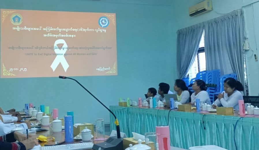မြန်မာနိုင်ငံ အမျိုးသမီးများနှင့်ကလေးသူငယ်များ ဘဝမြှင့်တင်ရေးအသင်းမှ ဗဟိုအလုပ်အမှုဆောင် ဒေါက်တာကြူကြူအေး နှင့် အလုပ်အမှုဆောင် ဒေါ်အေးအေးဝင်း တို့သည် ၃၁.၁၀.၂၀၂၅ ရက်နေ့ လူမှုဝန်ထမ်း၊ ကယ်ဆယ်ရေးနှင့်ပြန်လည်နေရာချထားရေးဝန်ကြီးဌာန၊ လူမှုဝန်ထမ်းအစည်းအဝေး ခန်းမ၌ကျင်းပပြုလုပ်သော ၂၀၂၅ ခုနှစ်၊ နိုဝင်ဘာလ(၂၅)ရက်နေ့မှ ဒီဇင်ဘာလ(၁၀)ရက်အတွင်း ကျရောက်သော အမျိုးသမီးများအပေါ် အကြမ်းဖက်မှုပပျောက်ရေး (၁၆)ရက်တာလှုပ်ရှားမှု အကြိုညှိနှိုင်းအစည်းအဝေးသို့ တက်ရောက်ခဲ့ပါသည်။