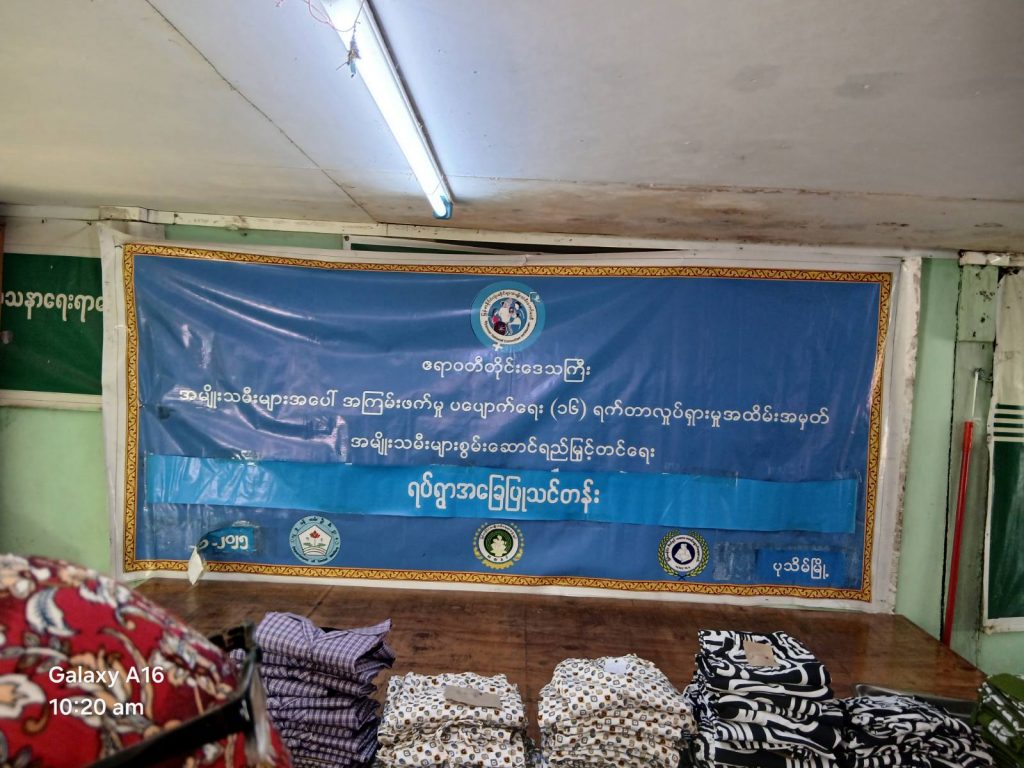 ဧရာဝတီတိုင်း အမျိုးသမီးများနှင့်ကလေးသူငယ်များ ဘဝမြှင့်တင်ရေးအသင်းမှ ဥက္ကဌနှင့် အဖွဲ့ဝင် ၂ ဦးသည် ၁.၁၂.၂၀၂၅ ရက်နေ့တွင် ပုသိမ်မြို့၌ကျင်းပပြုလုပ်သော ဧရာဝတီတိုင်းဒေသကြီး အမျိုးသမီးများအပေါ်အကြမ်းဖက်မှု့ပပျောက်ရေး (၁၆)ရက်တာလှုပ်ရှားမှု အထိမ်းအမှတ်၊ အမျိုးသမီးများစွမ်းဆောင်ရည်မြှင့်တင်ရေး၊ ရပ်ရွာအခြေပြုသင်တန်းသို့သွားရောက်၍ စက်ချုပ်သင်တန်းသူ (၁၅)ဦးအား သင်ထောက်ကူပိတ်စများ ထောက်ပံ့ပေးအပ်ခဲ့ပါသည်။ လှူဒါန်းမှုစုစုပေါင်းငွေ ၁၀၀,၀၀၀/-ကျပ်ဖြစ်ပါသည်။