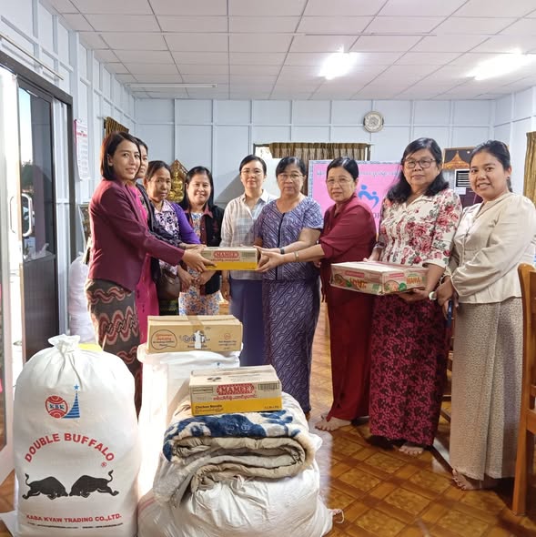 မြန်မာနိုင်ငံ အမျိုးသမီးများနှင့်ကလေးသူငယ်များ ဘဝမြှင့်တင်ရေးအသင်း ဒုဥက္ကဌ၊ အတွင်းရေးမှူးနှင့် ဗဟိုအလုပ်အမှုဆောင်များသည် ၁.၁၂.၂၀၂၅ ရက်နေ့တွင် ရခိုင်ပြည်နယ်မှ ကူညီစောင့်ရှောက်မှုပေးရန်လိုအပ်လျက်ရှိသော မိသားစုများအတွက် ထောက်ပံ့ငွေများ၊ ခေါက်ဆွဲခြောက်များ၊ အမွှေးပွစောင်များ၊ အဝတ်အထည်များနှင့်ကလေးငယ်များအတွက် ကစားစရာပစ္စည်းအရုပ်အစုံပါဗူးများကို ထောက်ပံ့လှူဒါန်းခဲ့ပါသည်။